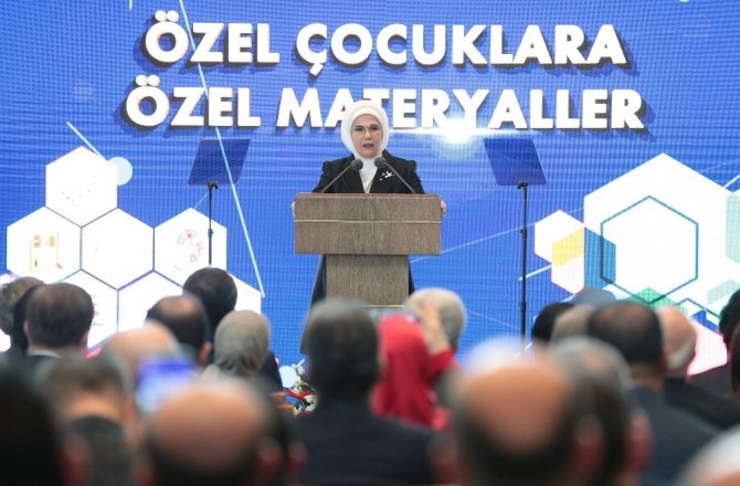 Özel çocuklar için hazırlanan özel eğitim materyallerini taşıyan 7 tır, Türkiye’nin yedi bölgesine gönderildi. Törende konuşan Cumhurbaşkanı Recep Tayyip Erdoğan’ın eşi Emine Erdoğan, “İyi eğitim almış, bilgiye erişmede tek başına yolculuğa çıkabilecek donanıma sahip bir nesle ihtiyacımız var. Bu süreçte hiçbir evladımızı gözden çıkaramayız" dedi.
