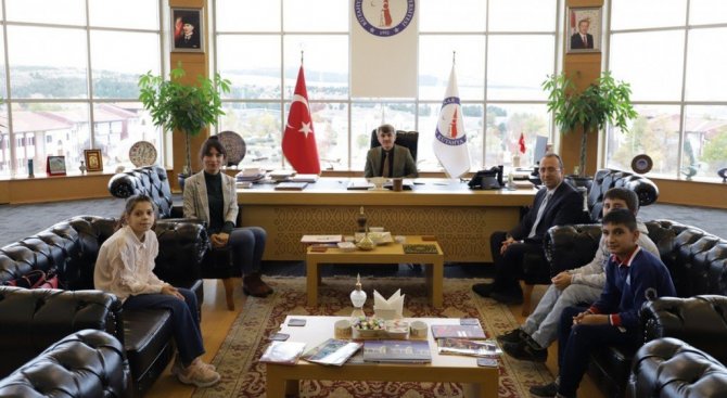 Rektörlük makamında gerçekleşen görüşmede Çinikent Özel Eğitim Okulu Müdürü Mustafa Çolak, Özel Eğitim Öğretmeni Esra Dönmez ve öğrenciler yer aldı. Rektör Kazım Uysal, 6. sınıf öğrencilerinin okul dergisi için hazırladıkları soruları yanıtlarken üniversitede yapılan çalışmalar hakkında bilgiler verdi.