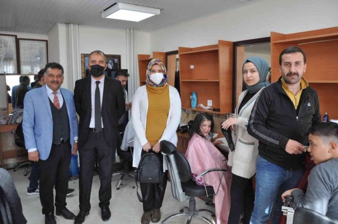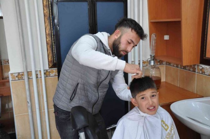 Kütahya'nın Simav ilçesindeki Halil İbrahim Kazcıoğlu Mesleki Eğitim Merkezi Müdürlüğü ve Özel Eğitim Uygulama Okulu Müdürlüğü işbirliğiyle hazırlanan proje kapsamında, özel eğitime muhtaç öğrencilerin saç kesimi ve bakımları yapıldı.