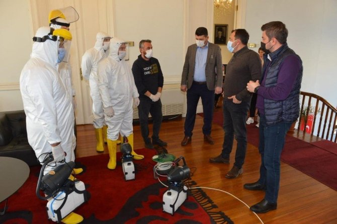Başkan Yardımcısı Sabri Çınar, özel dezenfeksiyon ekibiyle birlikte Süleymanpaşa Belediye Başkanı Cüneyt Yüksel’e bir sunum yaparak çalışmalar hakkında bilgilendirmede bulundu. Yüksel, çalışmaları dikkatle takip ettiğini belirterek başarılı çalışmaların devamını diledi.