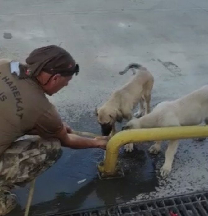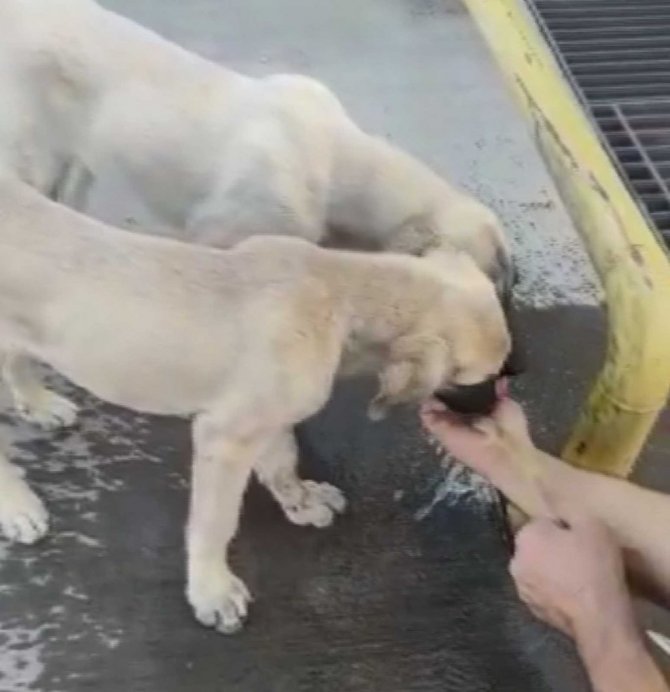 Malatya'da bir özel harekat polisinin susayan sokak köpeklerine avcuyla su içirdiği görüntüler yürekleri ısıttı.