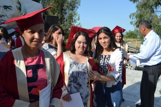 Manisa Celal Bayar Üniversitesi (MCBÜ) Salihli Meslek Yüksek Okulu ile Salihli Tüm Engelliler Derneği tarafından ortaklaşa düzenlenen temsili mezuniyet töreninde Otizm ve Down sendromlu 33 öğrenci kep...