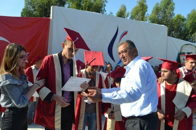 Özel öğrenciler üniversiten mezun olup, kep giydi