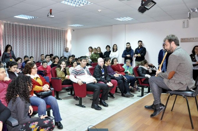 Ney’in çok kadim bir kültürün bizlere miras bıraktığı naif bir enstrüman olduğunu ifade eden neyzen Kerem Tufan; “Sazlıktan kesilen kargılardan imal edilen Ney’in, psikolojimize, ruh halimizin geneline hitap eden, ruha şifa veren bir özelliği var. Ben de uzun süren eğitimlerimin sonunda bir müzik terapisti olarak ve enstrümanın da ney olması vesilesiyle ve avantajıyla özel gereksinimi olan bireylere Ney ile birlikte terapi ve şifa paylaşmak amacıyla gönüllü olarak okul okul geziyorum. Erişebildiğim okullara, engelliler okuluna, rehabilitasyon merkezlerine gidip bu sedayı paylaşıp, onların da, o kanatsız meleklerin de huzur bulmalarını sağlayıp yoluma devam ediyorum. Bu Nazilli’de ilkti, ama Allah nasip ederse son olmayacak. Bundan sonra inşallah sık sık bir araya geleceğiz. Otizmli kardeşlerimizin sürekli tekrarlayan hareketleri vardır. Hepsinin farklıdır ve öfke nöbetleri vardır. Ben bu sazın sedasını onlarla 10 yıl önceden beri paylaşıyorum. Bu sazı üflediğim hiç bir okulda, hiç bir toplulukta, otizmi olan hiç bir öğrencinin öfke nöbetine denk gelmedim. Onların halleri arasında birçok tecrübeye sahibim. Bir özel eğitim öğretmeni kadar sahibim. Özel alanım çünkü bunun üzerinde ihtisas yaptım. Çok önemli bir şey var öfke nöbetlerine, takıntılı hareketlerine bu sazı dinlerken vedalaşmış oluyorlar ve bunu velileri, öğretmenleri çok iyi bilir, bu çok özel bir reaksiyon. Onları dinlendirdiğini, sakinleştirdiğini ve içerisinde bulundukları dünyadan bir an olsun reel dünyadan uzaklaştırdığının farkındayım. Onun için sadece benim üflediğim kadarıyla değil, benden sonrasında da bu enstrümandan haberdar olan herkesin, her bireyin bunun huzurundan istifade etmesini dilerim” dedi.