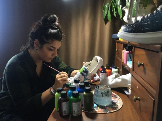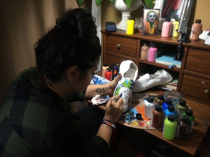 Ayakkabılar üzerine çizdiği resimlerle dikkat çeken Ressam Yasemin Karakaya, evde icra ettiği sanatıyla kendisine gelir kapısı açtı. Karakaya, ayakkabıların üzerine değişik motif, fotoğraf ve şekiller resmederek onlara farklı bir hava katıyor.