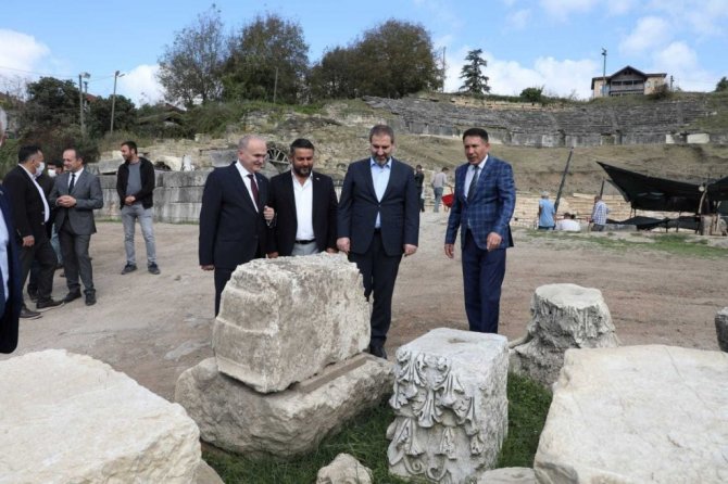 AK Parti Genel Merkez Araştırma- Geliştirme ve Eğitim Başkanı Mustafa Şen ve Başkan Yardımcısı Osman Karaarslan daha sonra Başkan Özlü'nün önem verdiği Antik Tiyatro'nun kazı çalışmalarını yakından takip etti. Karadeniz'in Efes'i olma yolunda ilerleyen Konuralp Antik Tiyatronun tarihi ve günümüze kadar yapılan çalışmalar hakkında bilgi sahibi olan AK Parti heyeti, yapılan çalışmaları takdirle karşıladıklarını kaydetti.