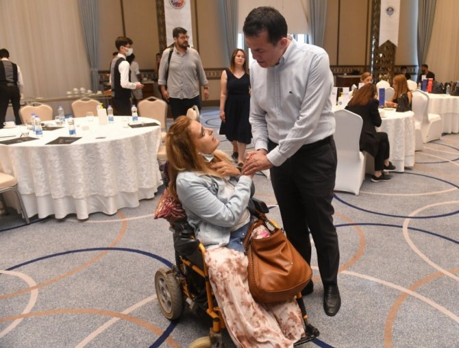 Özyiğit'in engelli bireylere yönelik çalışmaları salondaki engelli bireyler tarafından da takdirle karşılandı.