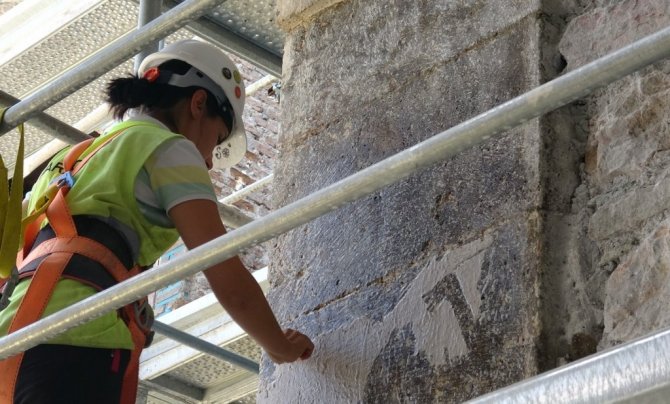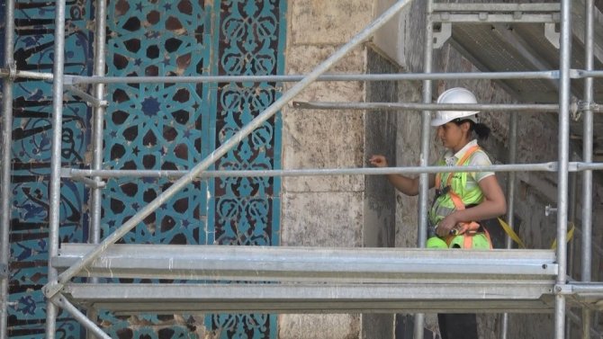 Sıva altında kalan çiniler ortaya çıkartıldı