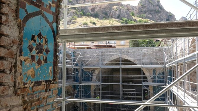 Tokat'ta 3 medeniyete ait izler taşıyan Gök Medrese'de bulunan turkuaz renkli çiniler aslına uygun olarak restore ediliyor.