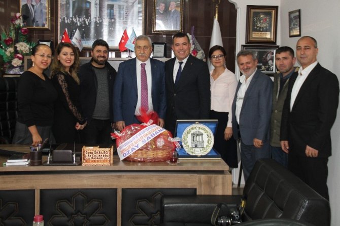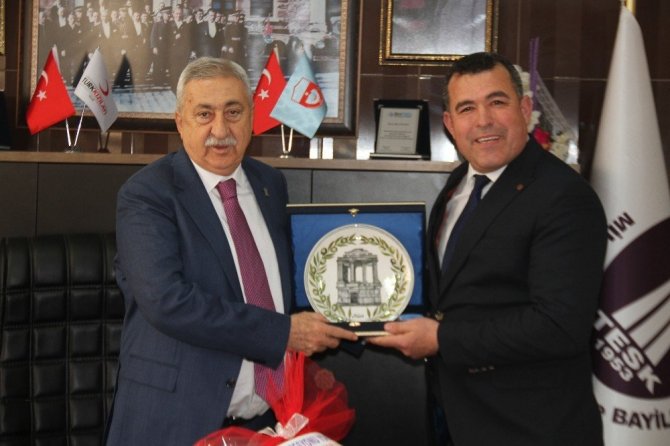Başkan Sabancı TESK Başkanı Palandöken’e içinde Milas Gümüşkesen Anıt Mezarının resmi işlemeleri bulunan Seramik tabak ve Milas yöresel ürünlerinden oluşan hediye sepetini takdim etmesinin ardından oda binasını gezerek çalışan personellerle hatıra fotoğrafı çektirilmesi sonrası ziyaret son buldu.