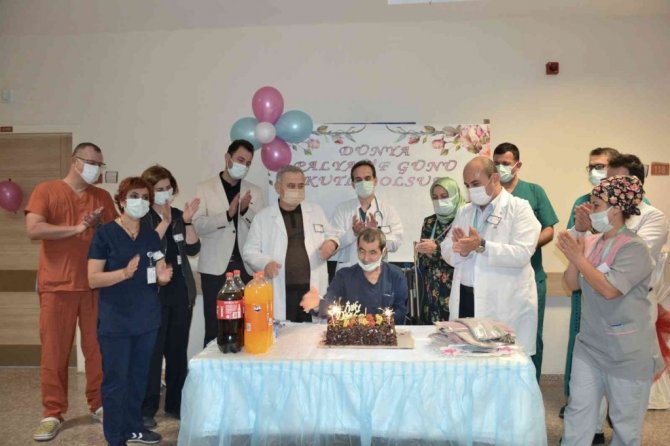 Samsun Bafra Devlet Hastanesi Palyatif Bakım Servisi'nde tedavi gören Hüseyin Öztürk'e hastane yönetimi ve servis çalışanları tarafından sürpriz bir doğum günü düzenlenerek 65. yaşı kutlandı.
