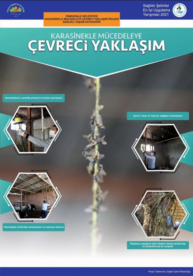 Pamukkale Belediyesine ödül getiren bir diğer yarışma ise yine Pamukkale Belediyesinin üyesi olduğu Sağlıklı Kentler Birliği'nin "2021 Sağlıklı Şehirler En İyi Uygulama Yarışması" oldu. Yarışmada, Çevre Koruma ve Alt Yapı Çalışmaları Sağlıklı Yaşam kategorisinde Pamukkale Belediyesi, "Karasinekle Mücadeleye Çevreci Yaklaşım" başlığıyla katıldığı yarışmada jüri özel ödülüne layık görüldü. Karasinekle mücadelede kimyasal içermeyen, çevreye ve hayvanlara zarar vermeyen yer altı ve yer üstü kaynaklarının kirliliğinin önüne geçen yapışkan ip kullanılması Pamukkale Belediyesinin ödül almasını sağladı. "2021 Sağlıklı Şehirler En İyi Uygulama Yarışması"nın ödül töreninin Ekim ayı içinde gerçekleşeceği açıklandı.