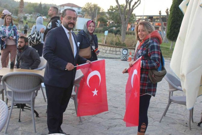 Denizli'nin dünyaca ünlü turizm merkezi Pamukkale, 29 Ekim Cumhuriyet Bayramının 98. yıldönümünde farklı bir etkinliğe ev sahipliği yaptı.