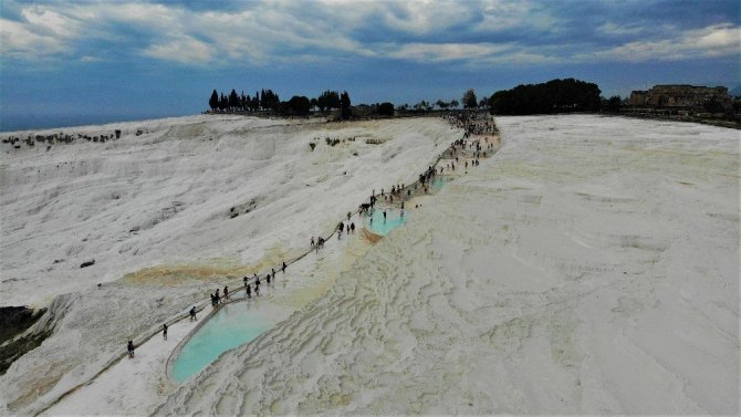 Türkiye’nin en önemli tarihi yerlerinin başında gelen Pamukkale’de yılbaşının yaklaşması ile geçen yıllarda olduğu gibi bu yılda turistlerin ilgi odağı oldu.