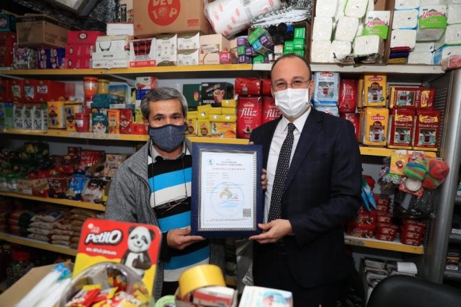 Pamukkale ilçe sınırları içinde açılan iş yerlerinin açma ruhsatı Pamukkale Belediyesi tarafından veriliyor. 2021 yılının ilk iş yeri açma ruhsatı Fatih mahallesinde faaliyetlerine başlayan Aycan Market isimli iş yerine verildi. Pamukkale Belediye Başkanı Avni Örki, esnaf Halil Aycan'ı ziyaret ederek hem hayırlı olsun dileklerini sundu hem de iş yeri açma ruhsatını teslim etti. Başkan Örki'yi karşısında gören Aycan, "Ziyaretiniz için teşekkür ederim. Gerçekten benim için sürpriz oldu" dedi.