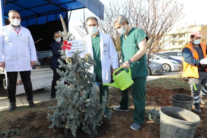 Sağlıklı günlere ulaşıp, özgürce nefes alınabilen ve yıllar sonra maskesiz bir hayatta anı olarak kalması ümidiyle hastane yönetimi ve asistan doktorlar tarafından ağaç dikimi yapıldı.