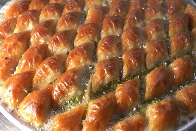 İmalathanelerde baklava hamurunu merdanelerle adeta kağıt inceliğinde açan ustalar, açtıkları yufkaları Antep fıstığı ve sadeyağ ile harmanlayıp odun ateşiyle harlanan taş fırınlarda pişiriyor. Fırınlarda pişen baklavalar, şerbetle buluştuktan sonra ise yemeye hazır hale geliyor. Meşakkatli aşamalardan geçen Gaziantep baklavası, Ramazan Bayramı'nda ağızları tatlandırmak üzere Gaziantep'ten Türkiye'nin 81 ili ile dünyanın pek çok ülkesine kargoyla gönderiliyor.