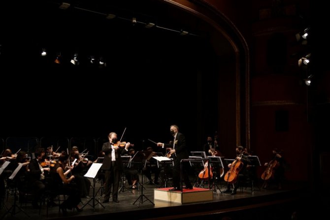 Pandemi sürecinde geliri olmayan orkestra sanatçılarına destek olmak amacıyla kurulan Kadıköy Belediyesi Pandemi Orkestrası'nın beşinci konserinin konukları şef Hakan Şensoy ve keman virtüözü Cihat Aşkın oldu.