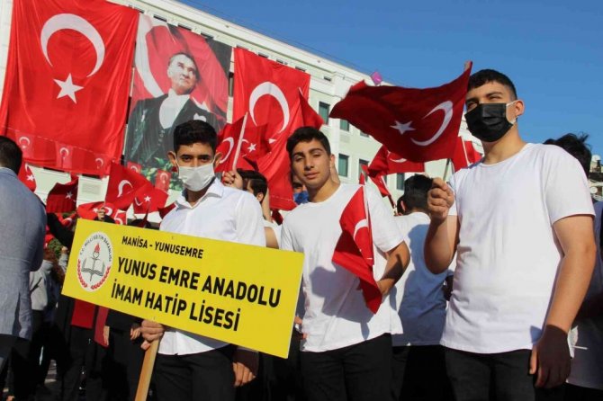 Şiirlerin okunması ve halk oyunları gösterileriyle devam eden kutlama programı kortej yürüyüşüyle devam etti. Kortej yürüyüşü sırasında tören alanının üstünde 4 yamaç paraşütçüsü açtıkları Türk bayraklarıyla Manisalıları selamladı. Kortej yürüyüşü vatandaşlardan büyük ilgi görürken pandemi sonrası düzenlenen bayram kutlamalarına vatandaşların oldukça fazla ilgi gösterdiği görüldü.