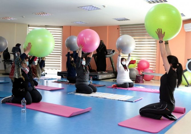 Van'da pandemi nedeniyle sık sık evden çıkamayan ve sosyal aktiviteleri kısıtlanan kadınlar, büyükşehir belediyesinin açtığı salon sporları kursuna büyük ilgi gösteriyor.