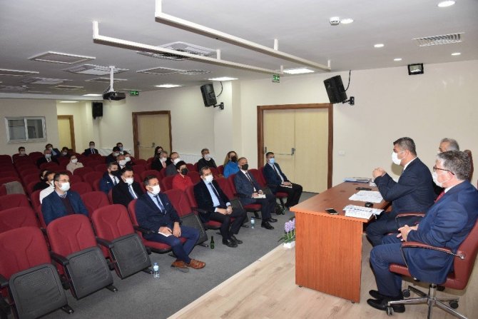 Milli Eğitim Müdürlüğü toplantı salonunda gerçekleştirilen değerlendirme toplantısında konuşan Müdür Ekici "Verimliliği ve çeşitliliği artıma adına çalışmalarımız devam ediyor. Meslek liselerimiz pandemide ilk öncelikli ihtiyaçlar olan; dezenfektan, yüzey temizleyiciler, siperlik, maske ve önlükler ürettti. Bir yıllık süreçte okullarımızın ve kurumlarımızın ihtiyacı olan maske ve dezenfektanları dışarıdan almadık. Tüm bunların hepsini mesleki eğitim veren okullarımızın ürettiklerinden temin ettik. Sonraki süreçte de çevre illerden gelen taleplere cevap vererek ürünlerimizi gönderdik. Sayın Bakanımız Ziya Selçuk Beylerde pandemi sürecinden mesleki eğitimlerin başarısını "Meslek Liselerimizi Destan Yazdı" şeklinde dile getirdi. Bu bizim için bir taçtır. Pandemide gücümüzün farkına vardık. Meslek liseleri bu ülke ekonomisi ve sanayisinin itici ve destekleyici gücüdür. Döner sermayelerimiz güçlendikçe yeni fikirler ve üretim alanları için Ar-Ge çalışmalarına daha da öncelik verebileceğiz. Görünürlüğümüzü ve tanınırlığımızı artırarak meslek liselerine olan güveni en üst düzeye çıkaracağız. Tüm insanlık gibi bizlerde eski normlarımıza dönmek için can atıyoruz. Şuna inanıyorum ki bu günler meslek liselerinin destekleri ile geçecektir" dedi.