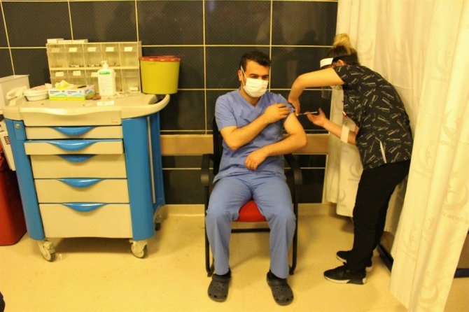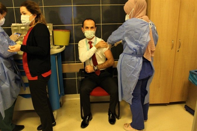 Çin'den getirilen korona virüs aşıları Gebze Fatih Devlet Hastanesinde sağlık personellerine yapılmaya başladı.
