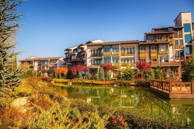 Bolu ormanlarının yamacında yükselmeye devam eden Narven Termal Kasaba, pandemi sürecinde sağlıklı ve güvenli bir tatil ortamı arayan tatilciler için eşsiz doğası ile ev konforunda hizmetlerine devam ediyor.