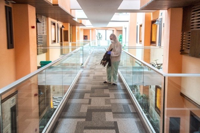 Tesiste gerçekleştirilen temizlik ve hijyen çalışmaları hakkında konuşan Yıldız, “Narven olarak temizlik ve hijyeni her zaman ön planda tuttuk ve süreç içerisinde gerçekleştirdiğimiz temizlik ve hijyen çalışmalarımızı salgın süreci başladığından beri iki katına çıkarttık. Bakım dönemlerimiz içerisinde de tüm dairelerimizde bulunan koltuklar, halılar, perdeler, nevresim takımları, tüm mutfak ekipmanları başta olmak üzere dairelerimizin tamamının detaylı temizliklerini, dezenfeksiyon çalışmalarını, bakımlarını ve onarımlarını gerçekleştirdik. ‘Dezenfeksiyon Ekibimiz’ tesis genelinde misafirlerimizin ve çalışma arkadaşlarımızın sağlığı ve güveni için günde en az 16 saat aralıksız olarak dezenfeksiyon işlemlerini sürdürmektedir. Çıkış günlerimizde dairelerimize detaylı temizlik işlemlerinin ardından ekibimiz tarafından dezenfeksiyon işlemi uygulanmakta ve temiz hava ile havalandırılmaktadır. Ayrıca salgın sürecinden öncede uygulamamız olan alan girişlerindeki el dezenfeksiyon ünitelerinin sayıları 5 katına çıkartılarak misafirlerimizin kolay bir şekilde ulaşabilecekleri tüm alanlara yerleştirilmiştir” şeklinde konuştu.