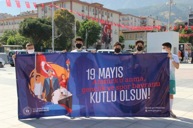 Manisa'da, 19 Mayıs Atatürk'ü Anma, Gençlik ve Spor Bayramı Covid-19 tedbirleri kapsamında çelenk sunma töreniyle kutlandı.