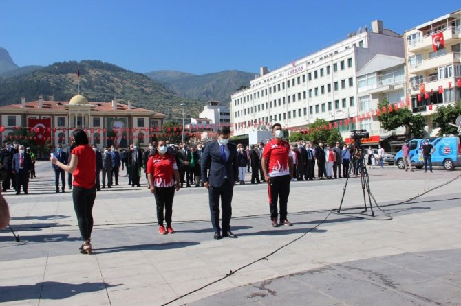 Törene Manisa Gençlik ve Spor İl Müdürü Yunus Öztürk, şube müdürleri, Şehzadeler Belediye Başkanı Ömer Faruk Çelik, CHP Manisa İl Başkanı Semih Balaban, İYİ Parti Manisa İl Başkanı Hasan Eryılmaz, Manisa Barosu Başkanı Ali Arslan, Manisa Büyükşehir Belediyesi Kültür ve Sosyal İşler Daire Başkanı Fırat Özcan, Zabıta Dairesi Başkanı Mustafa Duman, sporcular ve gönüllü gençler katıldı. Tören, Covid-19 tedbirlerine uygun şekilde maske ve sosyal mesafe kuralına uygun olarak gerçekleştirildi.