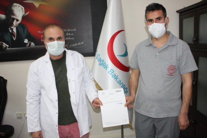 Hasan Denizli'nin aynı zamanda plazma vericisi olarak Kızılay kan merkezimize düzenli olarak plazma vermeye başladığını söyleyen Başhekim Çınar "Bu dönemde plazma Covid-19 antikorlarına karşı geliştirilen bir yöntem. Bu sadece Covid-19 geçiren kişilerden elde edilebilecek bir ürün. Hasan 8 defa plazma vererek, 8 kişinin hayatının kurtulmasına vesile olmuştur. Bu çalışmalarından dolayı biz hastane yönetimi olarak kendisine teşekkür plaketi veriyoruz" dedi.