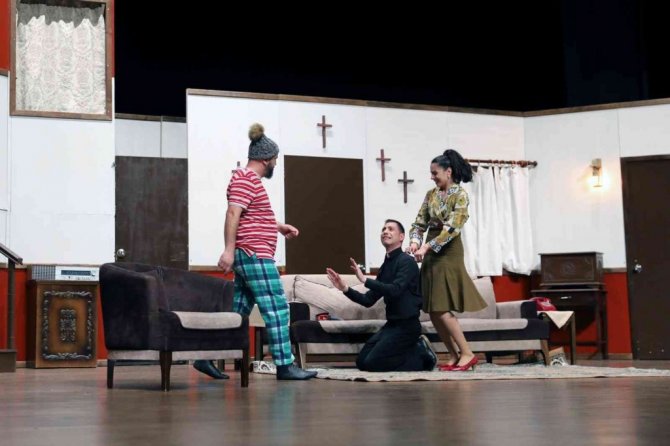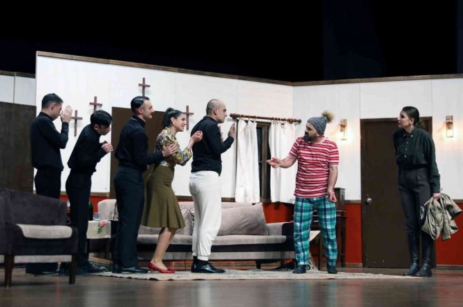 Gazi Mustafa Kemal Atatürk Kültür Merkezi Yıldız Kenter Sahnesinde oyuncularının etkileyici performansıyla izleyiciyle buluşan komedi oyunu "Papaz Kaçtı" Menteşeli tiyatro severler tarafından ayakta alkışlandı.