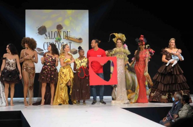 Çikolatalı moda defilesine yoğun ilgi gösteren çikolata ve moda severler, yeterli yer olmadığı için defileyi ayakta izlemek zorunda kaldı. Başkentin tarihi sergi sarayı Parc des Expositions de la Porte Versaille'de düzenlenen fuara katılan çikolata severler, dünyanın dört bir yanından gelen yüzlerce çikolata üreticisinin en son tasarımlarını keşfetme şansına sahip olacaklar.