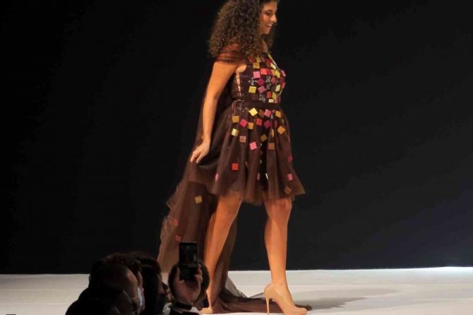 Paris’te mankenler çikolatadan elbiselerle podyuma çıktı