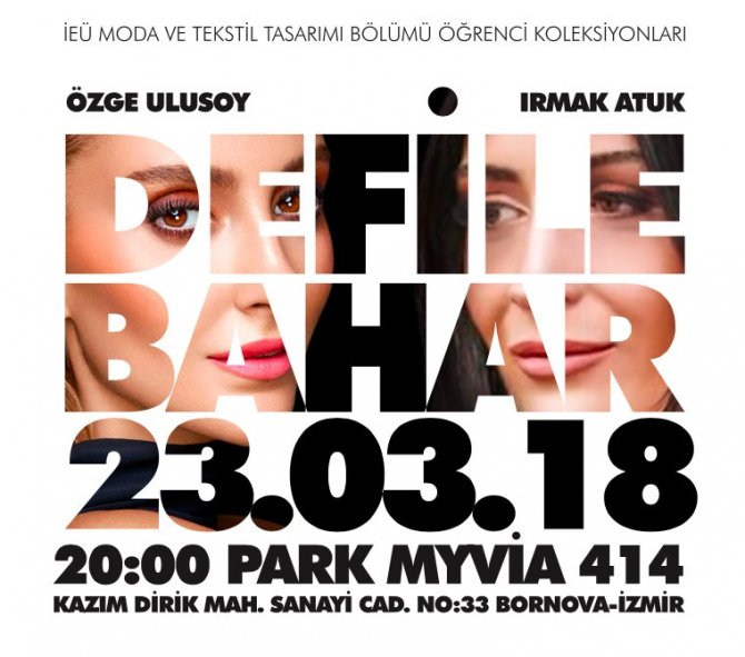 İzmir Ekonomi Üniversitesi Moda Tasarımı Bölümü üçüncü ve dördüncü sınıf öğrencileri ile Rönesans Ajans işbirliğinde gerçekleşecek defilede sezonun en güzel renkleri ve modelleri ilk kez görücüye çıkacak. 23 Mart Cuma günü saat 20.00’de Park 414’de gerçekleşecek defilede Türkiye’nin ünlü mankenleri Özge Ulusoy ve Irmak Atuk podyuma çıkacak. Park 414’ün ev sahipliğindeki etkinlikte, dünyadaki büyük partilerde sergilediği performanslarla dikkat çeken ünlü DJ David Şaboy da davetliler için çalacak. Klasik müzik ve elektro pop dalında popüler olan violenist Kate ise farklı performansıyla geceye renk katacak. Benzer etkinliklerden haberdar olmak isteyenler ise Park 414’ün sosyal medya hesaplarını takip ederek bilgi alabiliyor.