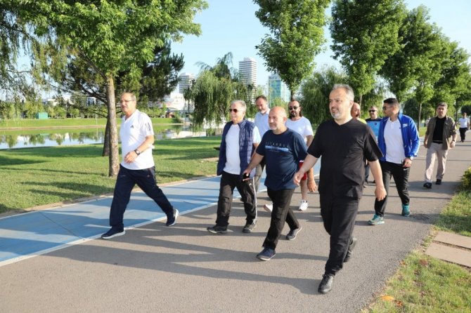 Açık havada spor etkinlikleri için Bursa'nın çok iyi bir altyapıya sahip olduğunu dile getiren Başkan Aktaş, "Hüdavendigar Kent Parkımız, yeni açtığımız Vakıf Bera Kent Parkı'mız, hazırlıkları devam eden Gökdere Millet Bahçemiz, Altıparmak'taki millet bahçemiz, Kültürparkımız, Botanik Parkımız, Nilüfer Deresi devamında düzenlenen alanları ve birçok yerde spor yapmak mümkün. Ben özellikle bütün Bursalı hemşerilerimize çağrıda bulunuyorum. Spor etkinliklerine katılsınlar, muhakkak suretle yürüyüş yapsınlar. En azından hafta sonları bile yapabilsek kardır diye düşündüm. Tabii biz bütün alanları Büyükşehir Belediyesi olarak hazırlanmaya çalışıyoruz. Temizlik ekibi, güvenlik ekibi yine park bahçe bakımları ile alakalı ciddi bir ekip çalışması var. Sağlıklı yaşam için spor önemli ve değerli. Tüm hemşehrilerimizi spor yapmaya davet ediyorum" dedi.