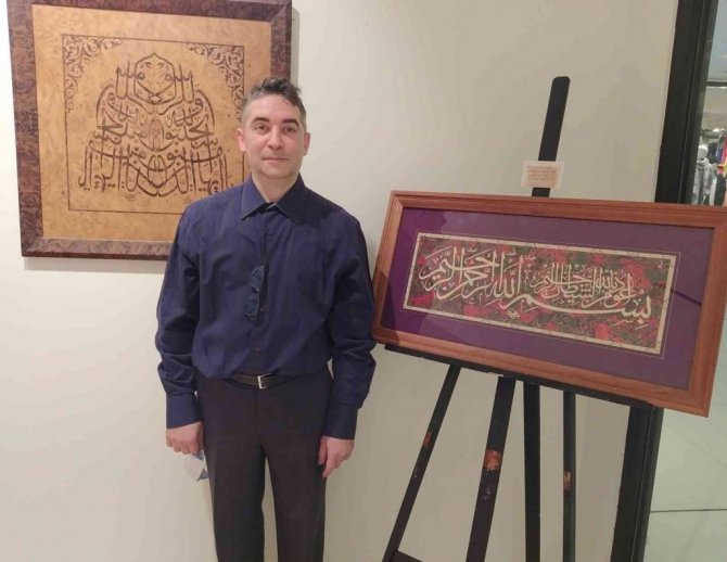 Ebru sanatçısı Abdullah Furat, "Biz üç ebrusever olarak bu sanata, televizyonda Alparslan Babahan'ı görerek başladık. 2007 yılında Irgandı Köprüsü'nde ebru kursuna başladık ve bugünlere kadar geldik. 2015 yılında ise İstanbul Yeni Kapı Mevlevihanesi'nde icazet almak nasip oldu. Yaptığımız ebru çeşitleri; çiçekli ebru, akkase ebru, hatip ebru ve battal ebru gibi çeşitlerimiz var. Ama en zoru ise akkase ebru. Çünkü akkase ebru, hat levhalarının battal ebru ile yapılma şeklidir. Önce hafif bir zeminde ebru üzerine hat kalıbı kesilerek yapıştırılıyor. Sonra battal ebru üzerine tekneye yatırılıp çekiliyor. Kalıp çıkarıldığında yazının olduğu yer battal ebru olarak kalıyor ve zemini de kapalı olduğu için başka boya almamış ve iki renkli olmuş oluyor. Akkase ebru bu şekilde yapılıyor. Sergimiz on gün daha açık kalacak" dedi.