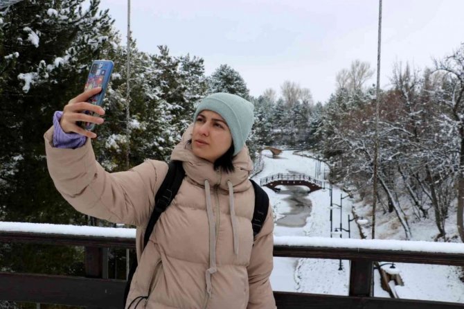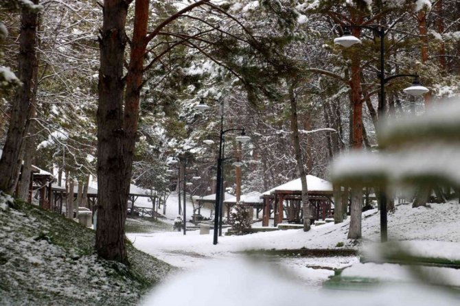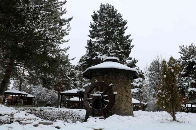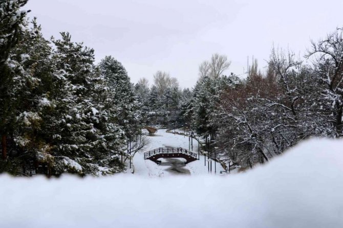Sivas'ta etkili olan kar yağışının ardından Paşabahçe mesire alanında kış masallarını andıran görüntüler oluştu.