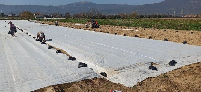 Mart ayının girmesiyle birlikte soğuk hava Ödemiş’te daha da etkisini gösterdi. Kentteki patates üreticileri de ürünlerini korumak için harekete geçti. Üreticiler bu kapsamda, don tehlikesine karşı tarlalarını elyaf örtüyle kapladı.