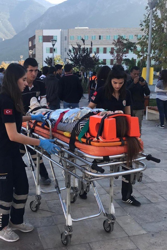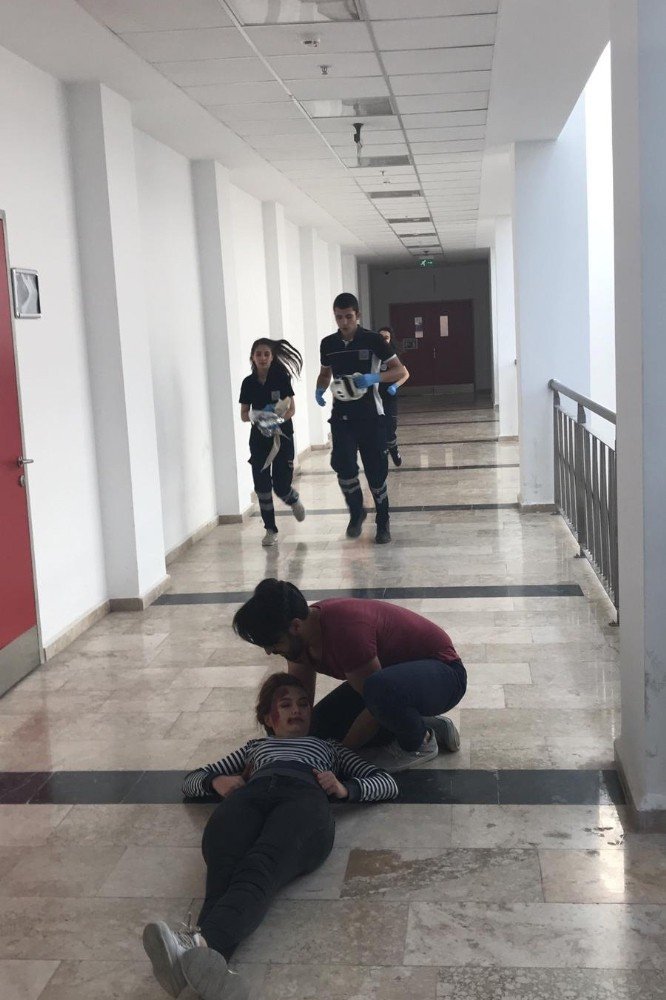 Pamukkale Üniversitesi (PAÜ) Sağlık Hizmetleri Meslek Yüksekokulunda yangın, doğal afet ve kaza senaryosuyla heyecan dolu tatbikat gerçekleştirildi.