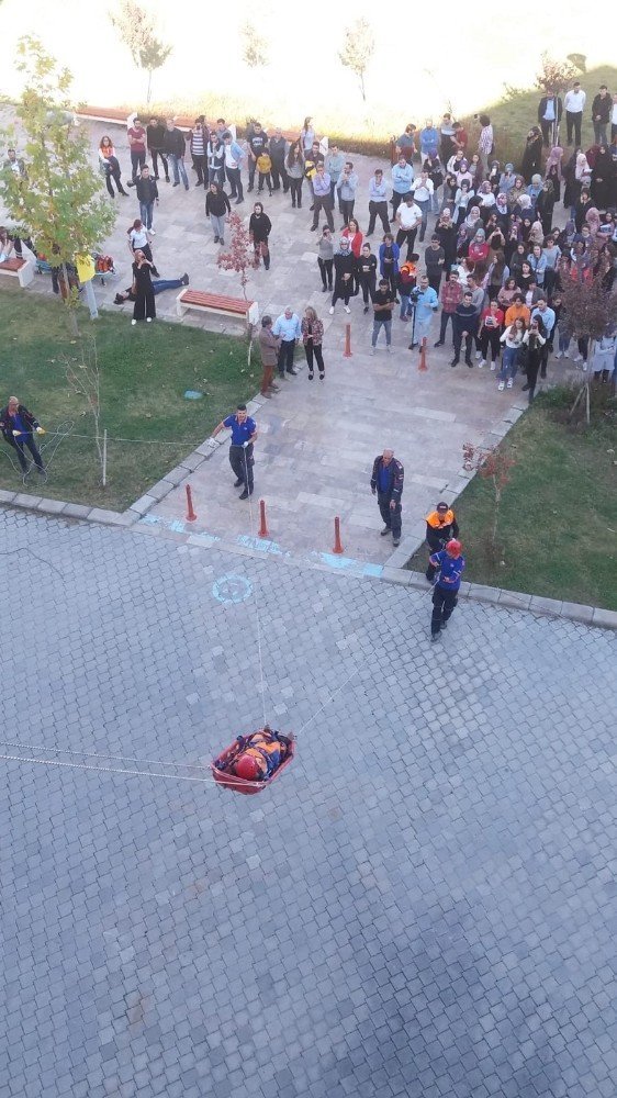 PAÜ Sağlık Hizmetleri Meslek Yüksekokulu’nda (MYO) İl Afet ve Acil Durum Müdürlüğü (AFAD) ekiplerinin desteğiyle tatbikat yapıldı. Yangın, doğal afet ve kazalarda arama, kurtarma ve tahliye koordinasyonunu sağlama amaçlı gerçekleşen tatbikat gerçeğini aratmadı. Tatbikattan habersiz olan ve öncesinde Temel Afet Bilinci ve Arama Kurtarma Eğitimi alan öğrenciler, sirenin çalmasıyla birlikte hızla binadan ayrıldı. Bina içerisinde kalan yaralılara da ilk müdahale yapılarak sedye yardımıyla binadan tahliye edilmeleri sağlandı. Kriz ortamının oluşturulduğu tatbikatta yangın senaryosu da gerçekleştirildi. Özel bir firma tarafından akademik ve idari personel ile öğrencilere yangın söndürme eğimi verildi. Yangın tüpleriyle müdahalede bulunan öğrenciler yangını söndürmeyi başardı. Tatbikatla öğrencilerin kriz senaryolarını yaşayarak öğrenmesi ve soğukkanlı davranarak tecrübe kazanmasının amaçlandığı belirtildi.