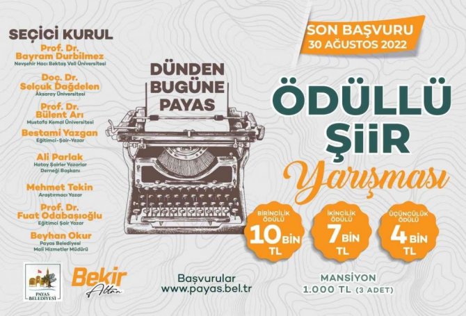 Payas Belediyesi ilçe oluşunun 10'uncu yılı nedeniyle ödüllü fotoğraf, şiir ve öykü yarışması düzenliyor. Türkiye'nin her yerinden başvuruların kabul edildiği yarışmalar için son başvuru tarihi ise 30 Ağustos 2022.
