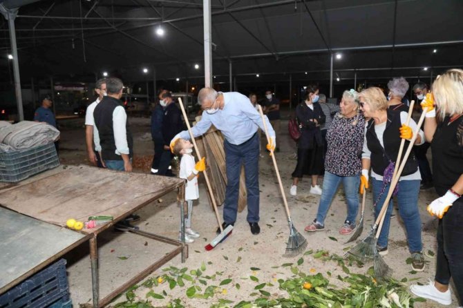 Toprağı onarmak amacıyla daha önce Mardin ve Diyarbakır'da kurdukları sistemle başarı kazanan sosyal girişimci Ebru Baybara Demir, Eda Çetinkaya Dalgıç ve Sozdan Demir'in Mezitli'ye gelerek belediye personeli ve gönüllülere uygulamalı seminer verdiğini hatırlatan Başkan Tarhan, "İlk çalışmamızdan ürettiğimiz kompostlar dönüşümünü tamamlamak üzere. Bunları çiftçilerimize önümüzdeki günlerde dağıtacağız. Biz bunun yanında başka bir mutluluğu daha yaşıyoruz. Kompost üretimimiz adeta seferberliğe dönüşerek dev bir proje oldu. Temizlik İşleri Müdürlüğümüzün yanı sıra gönüllümüz Ali Düdükçü'nün idaresinde pazarlarda görev yapacak gönüllülerin haftalık çalışma çizelgesi yayınlanıyor. Atıklar tespit ediliyor. Proje herkese tek tek anlatılıyor. Daha çok sayıda gönüllünün desteği alınmaya çalışılıyor. Ben de aralarında profesör, doktor, öğretmen, kimyager gibi meslek gruplarından bir araya gelen insanlarımızın sebze meyve atığı toplamasına destek vermek amacıyla semt pazarına geldim. Çok özel akşamlardan birisini yaşadım" dedi.