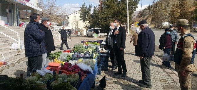 Kaymakam Muhammed Öztaş, kurum amirleriyle birlikte Malatya'nın Hekimhan İlçesi'nde Pazar denetimi yaparak, yeni tip korona virüs (Covid-19) kurallarına uyulup uyulmadığını kontrol etti.