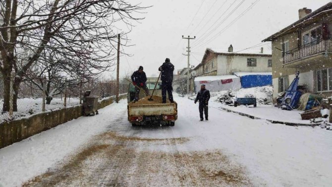 Kütahya'nın Pazarlar ilçesinde sürdürülen kar küreme ve tuzlama çalışmalarında 100 tondan fazla tuz kullanıldığı bildirildi.