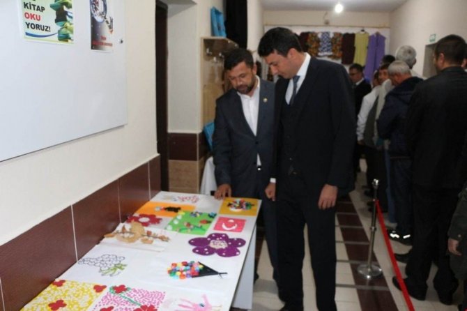 Kütahya’nın Pazarlar Halk Eğitimi Merkezi Müdürlüğü bünyesinde 2017-2018 yılı eğitim-öğretim yılında açılan sulu boya, ahşap boyama, ebru ve giyim kurslarını bitiren kursiyerlerin ürünlerinin sergilendiği yıl sonu karma sergi törenle açıldı.