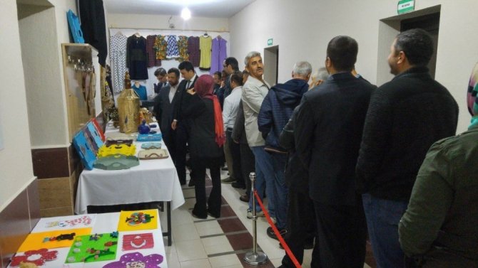 Pazarlar Kaymakamı Gürsel Temurci tarafından açılan Karma Serginin ardından protokol üyeleri sergilenen eserlerin bulunduğu stantları tek tek dolaşarak ürünler hakkında, usta öğreticilerden bilgiler aldı.