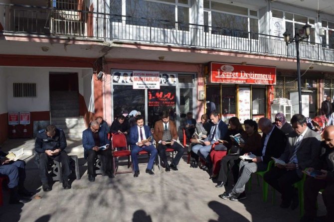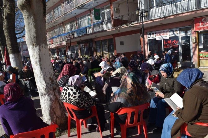 Pazarlar ilçe merkezinde düzenlenen kitap okuma programına ihtiyarı, genci, erkeği, kadını ve çoğuyla birlikte tüm ilçe halkı büyük ilgi gösterdi.
