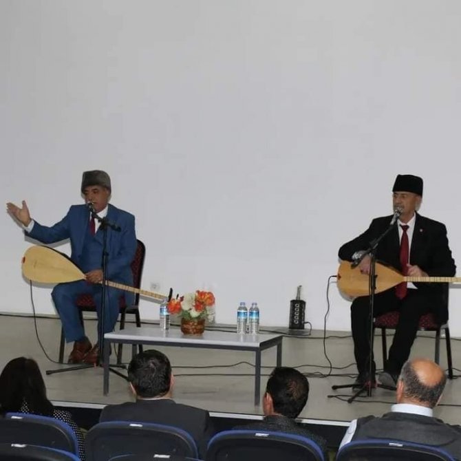 Öte yandan program sonunda Başkan Tekin, halk ozanlarına teşekkür ederek ilçeye ait topraktan kahve fincan seti hediye etti.