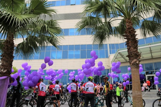 Pedalları kanser hastaları için çevirdiler, gökyüzüne mor balonlar uçurdular